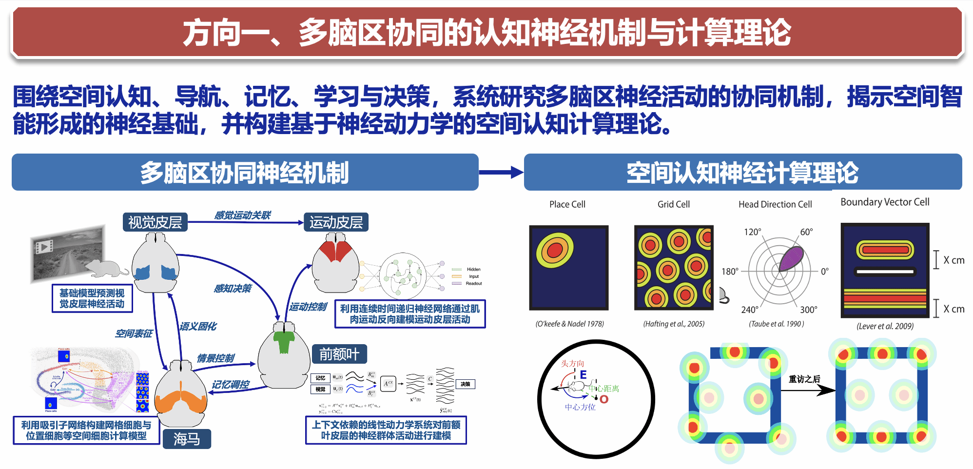 围绕认知与智能行为的神经基础,研究海马—内嗅皮层等多脑区协同机制,揭示导航、记忆、学习与决策等认知功能的神经编码与动态调控规律。在此基础上发展可解释的神经动力学模型与计算理论,刻画认知表征与信息传递机制,为类脑智能系统提供理论基础与生物学依据。